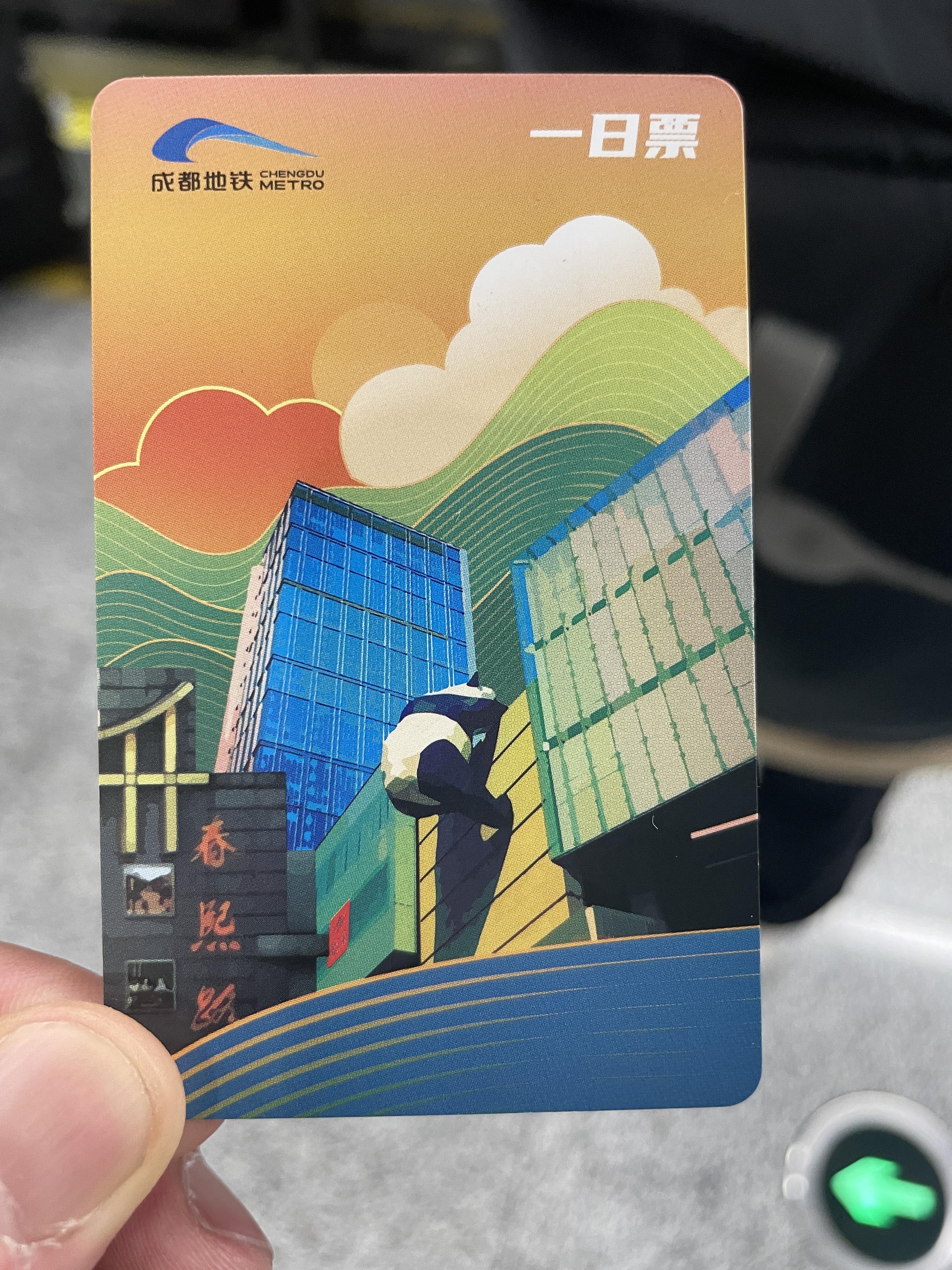 하루 지하철을 무제한으로 탈 수 있는 카드(1장에 20위안)다. 처음에는 저 카드가 의미하는 바를 모르고 여러장 구매했다.다 사용하지 못해서 2장정도는 한국에 가지고 들어왔다. 사용기한이 넉넉해 다시 청두에 들어갈 일이 있다면 사용할 수 있다.