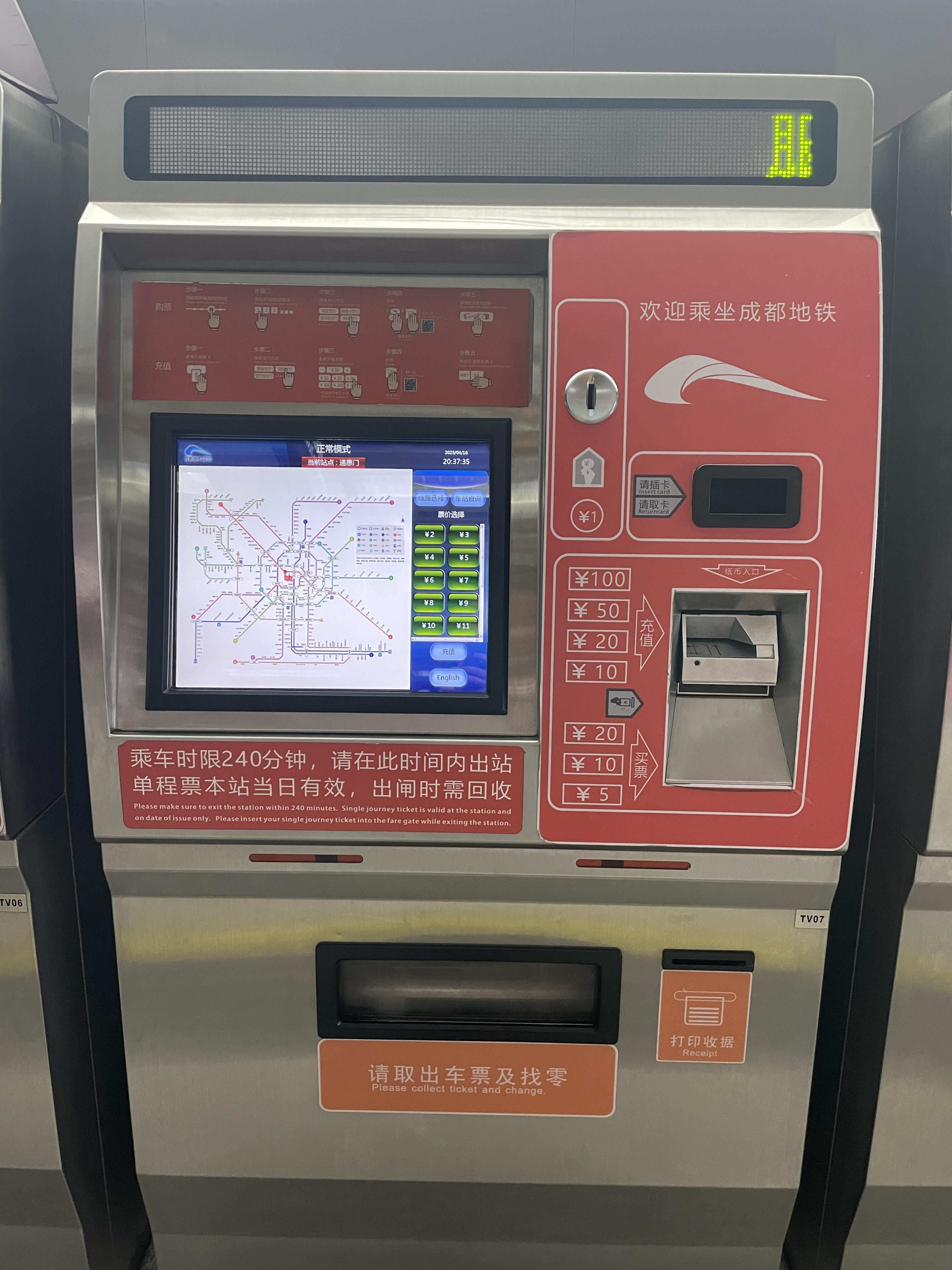 청두 톈푸공항에서 내가 묵을 숙소까지 지하철로 대략 75분정도 걸린다. 택시로도 60분 이상 걸리는 거리라서 시간이 급하거나 짐이 너무 많아 지하철 이동이 불편한게 아니면 지하철로 움직이는게 편하다.